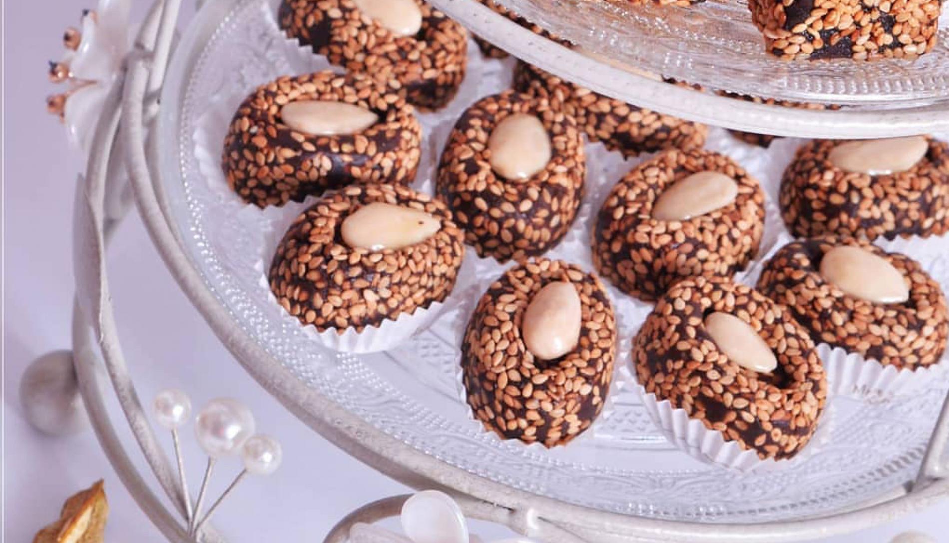 - .Le 2ème litre d'huile sera ajouté et permettra de façonner la laklouka en petites pièces en forme de doigts qui ne colleront pas aux mains ni au palais. Décorer avec les grains de sésame et les amandes.